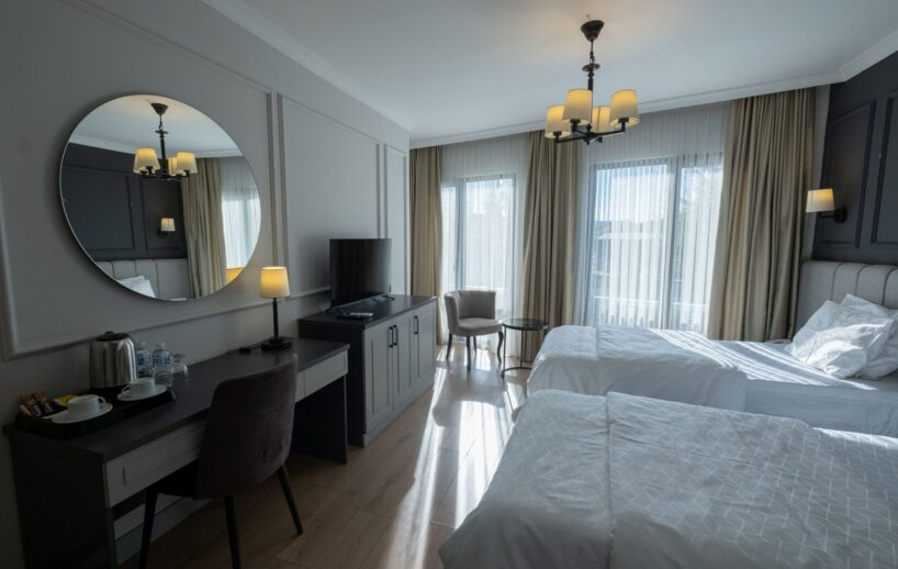 Fontana Verde Hotel’in Twin odaları, misafirlerimize konforlu ve ferah bir konaklama deneyimi sunmak için tasarlanmıştır. Odalarda iki adet tek kişilik yatak bulunmakta olup, arkadaşlar veya iş seyahati yapan misafirler için ideal bir seçenektir.